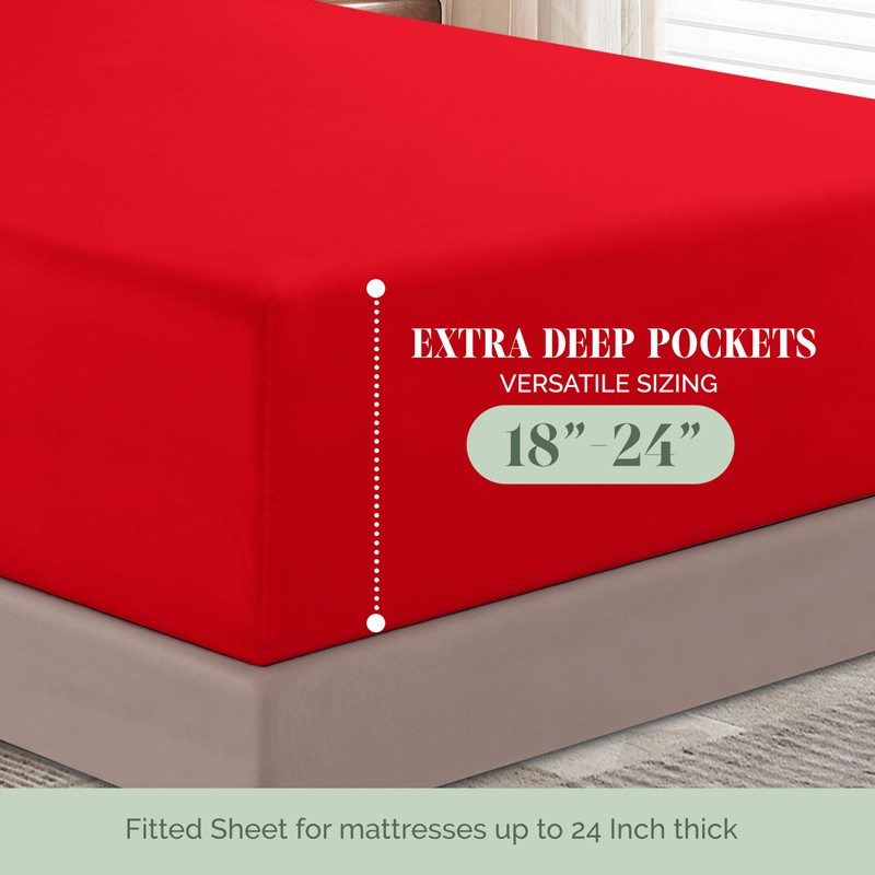 • ENHANCED DEEP POCKET FIT: Our fitted sheet is designed with extra-deep pockets to accommodate mattresses up to 24 inches thick, making it ideal for air mattresses, foam toppers, and other high-profile bedding. The all-around sewn-in elastic provides an easy, hassle-free fit that stays securely in place all night long.