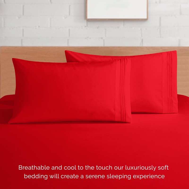 Elegant Comfort Luxurious 1500 Premium Hotel Quality Microfiber 4-Piece Sheet Set, 18-24 Inches Deep - Extra Deep Pocket Sheets - Ultra Soft 4PC Deep Pocket Sheets, Queen, Red