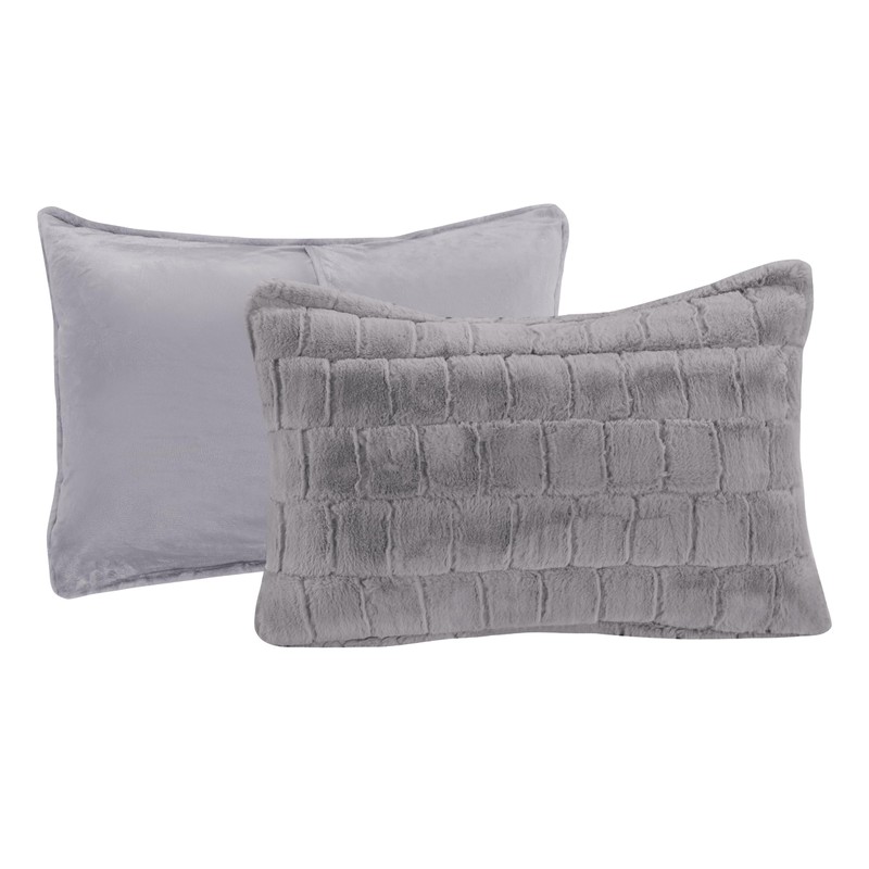 Elegant Comfort Luxurious Fluffy 3-Piece Faux Fur Comforter Set - All Season Warm Down Alternative - Ultra Soft, Plush Micro-Mink 3PC Bedding Set with Matching Shams, California King, Gray