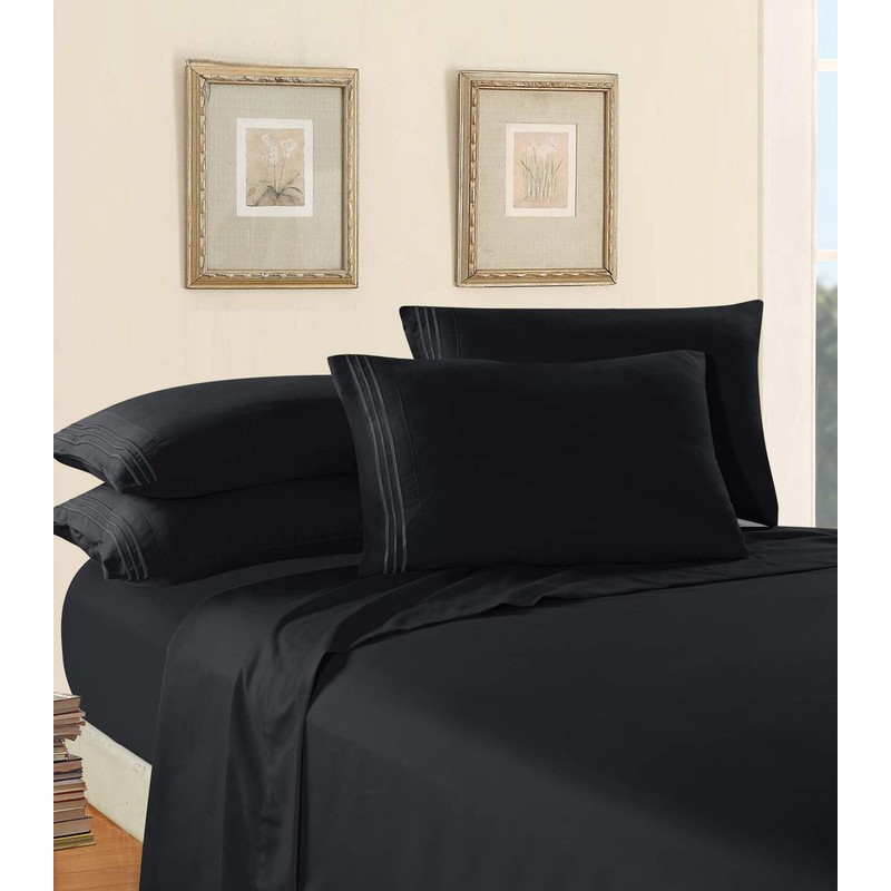 Elegant Comfort Luxury 1500 Premium Hotel Quality Microfiber 5-Piece Sheet Set - Wrinkle Resistant, All Around Elastic Fitted Sheet, Deep Pocket up to 16", Split King, Black