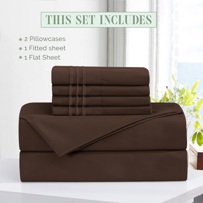Elegant Comfort Luxury Soft 4-Piece 1500 Premium Hotel Quality Bed Sheet Set with Extra Deep Pockets 18-24 Inch, Wrinkle Free, Storage Pockets, Extra Deep Pocket 4PC Sheets, Twin, Chocolate Brown