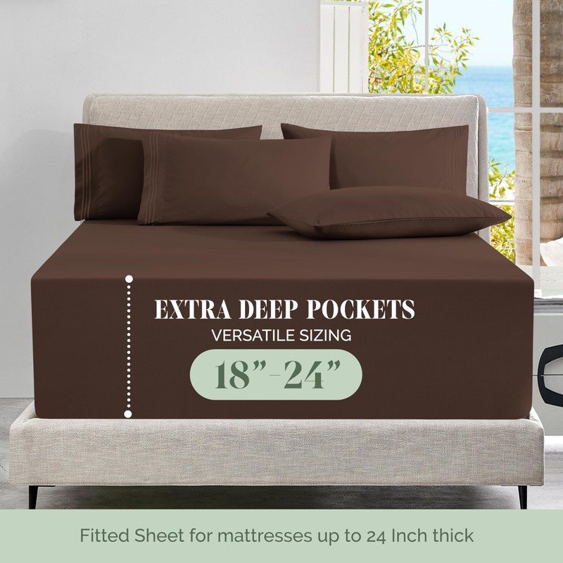 - EXTRA DEEP POCKETS: Designed specifically for mattresses with depths ranging from 18 to 24 inches, the fitted sheet hugs your mattress securely, preventing it from slipping off. Whether you have a thick pillow-top mattress or a deep mattress protector, these extra deep pockets ensure your sheets stay in place all night long.