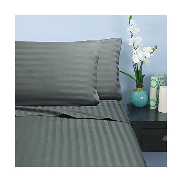 Elegant Comfort Silky-Soft 1500 Thread Count Egyptian Quality Wrinkle-Free 4-Piece Stripe Sheet Set, California King, Gray