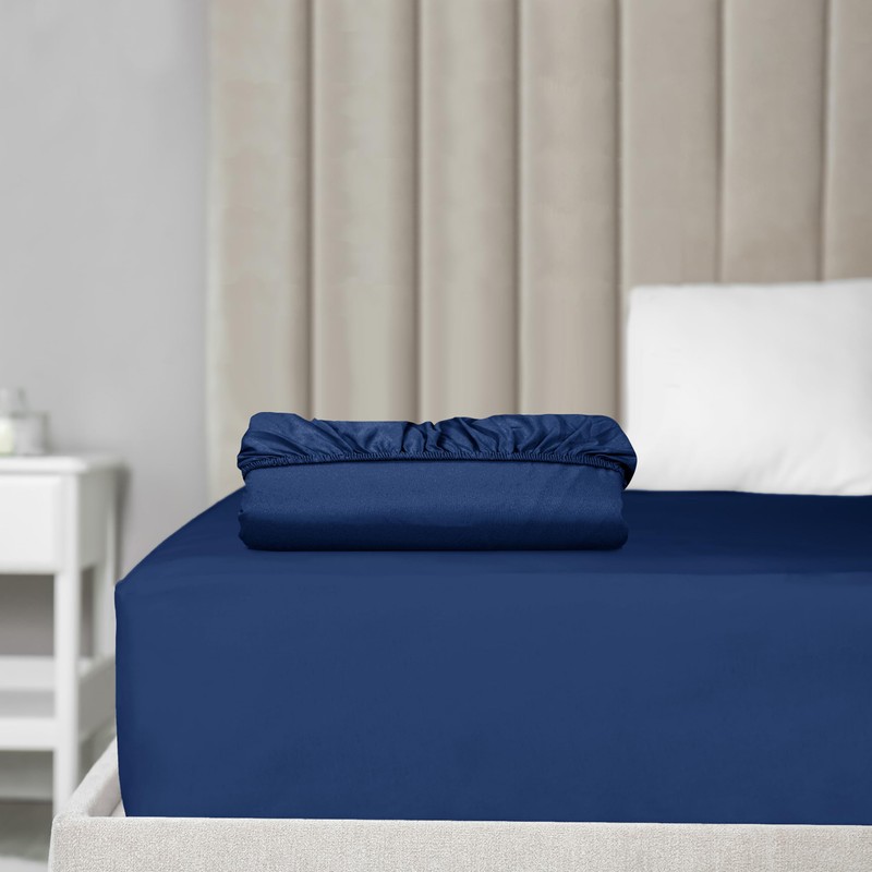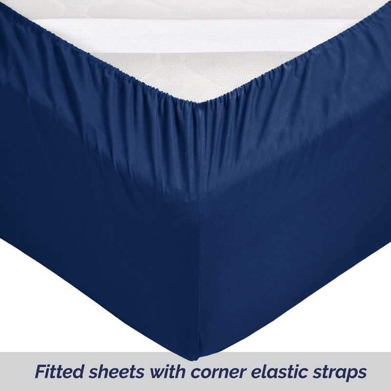 Elegant Comfort Super Soft 1-Piece Single Extra Deep Pocket 1500 Premium Hotel Quality Microfiber Fitted Sheet for High Mattress up to 21" inch with Double Sided Smart Pockets, Full, Navy