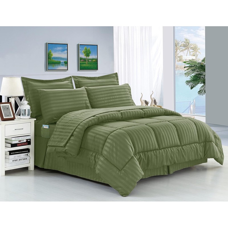 Elegant Comfort Wrinkle Resistant - Silky Soft Dobby Stripe Bed-in-a-Bag 8-Piece Comforter Set - Full/Queen, Sage