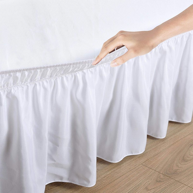 - ELASTIC OVERLAPPING - Thanks to the easy-stretch elastic on this bed skirt, you no longer need to wrestle With your mattress! The elastic band makes it easy to put this bed skirt on and off Without lifting the mattress.