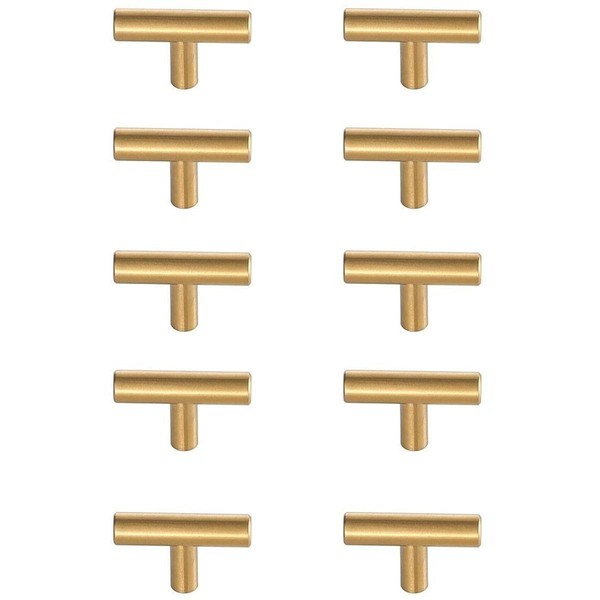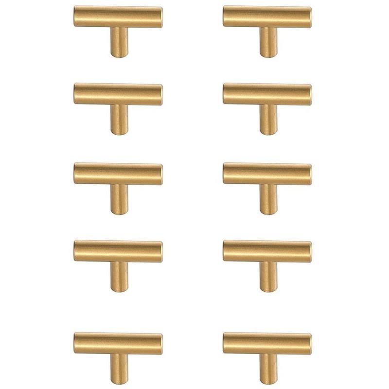 Elegant Decor Quinn Modern Zinc Alloy T Bar Pull Multipack in Brass (Set of 10)