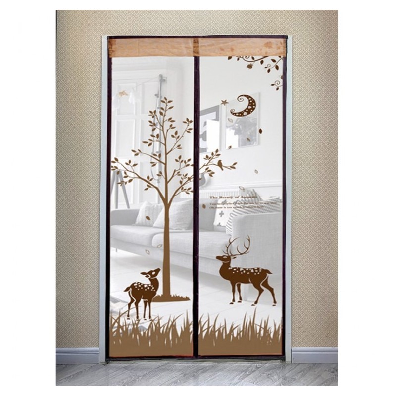 Elegant Deer Pattern Magnetic Door Mosquito Net (100x210cm) (Brown) 5ea
