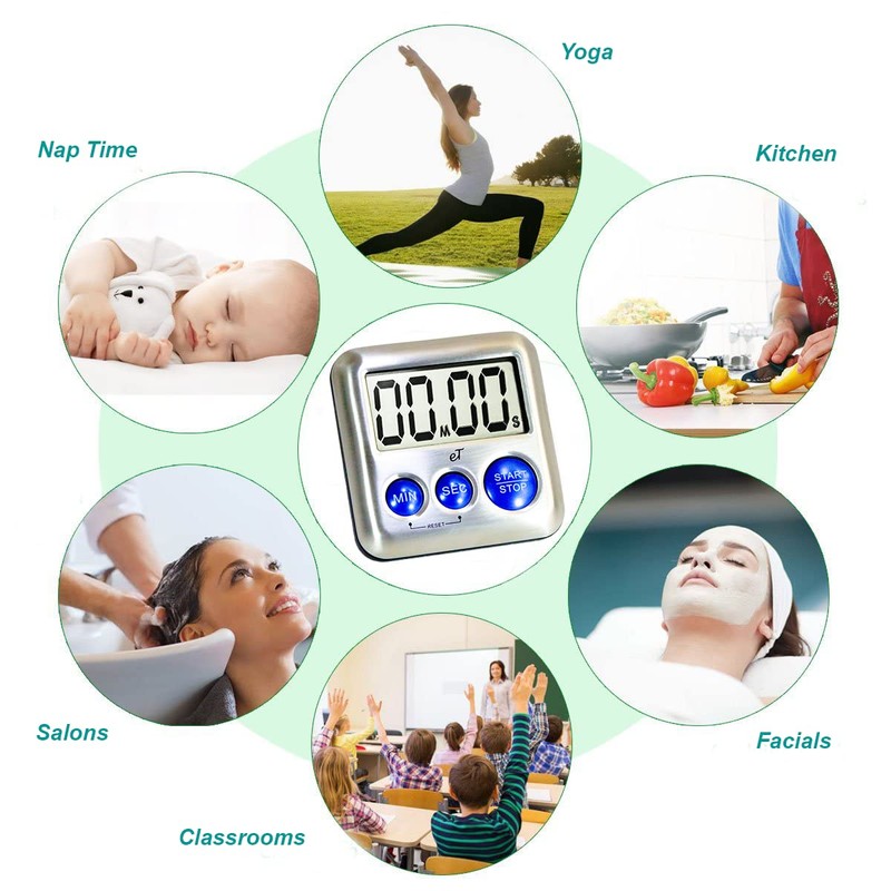 - Convenient Battery Saving Auto Shut-Off Feature: Engages when magnetic timer is idle and not being used for 3 minutes. Press any button to turn these durable chic kitchen timers for cooking on. (1) AAA Battery included. A Favorite: medical, dental, therapy, & productivity timer. Perfect cute egg timer for boiling eggs, kitchen timer, 2nd oven timer, cooking timer, kids timer, study timer, classroom timer, workout timer, visual timer, & are nice loud kitchen timers for seniors.