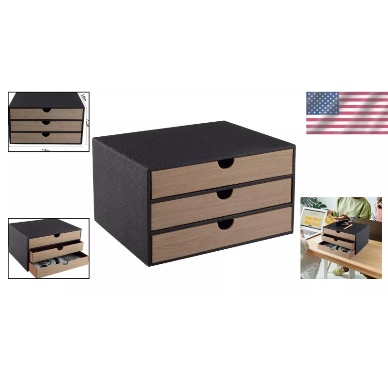 Elegant Faux Leather Desk Organizer with 3 Drawers