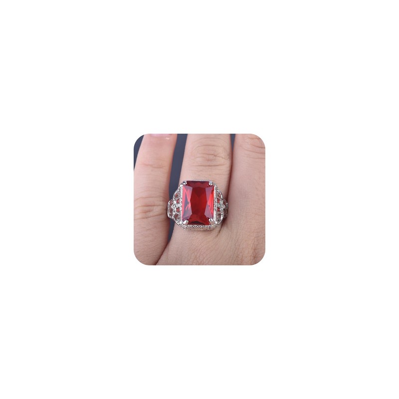 - Design: Features a large, striking red gemstone set in an intricately detailed silver band.