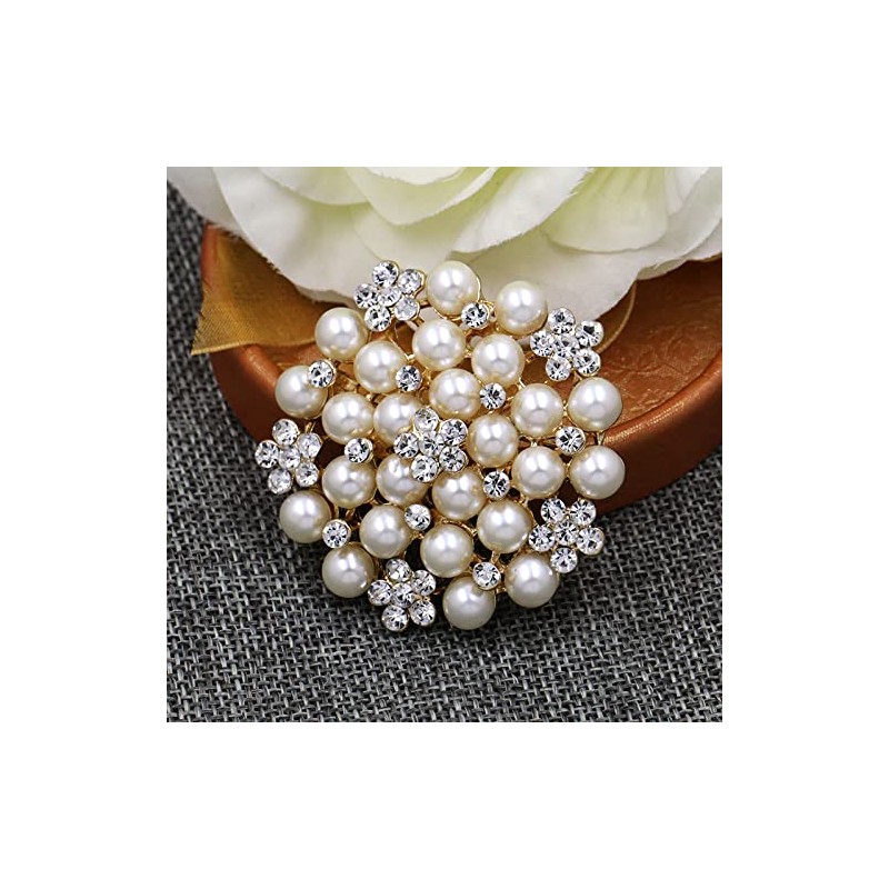 Elegant Imitation Pearl Floral Crystal Flower Brooch Pin Set Rhinestone Scarves Shawl Corsage for Wedding Bridal Clothes Bags Decoration Accessories-Gold