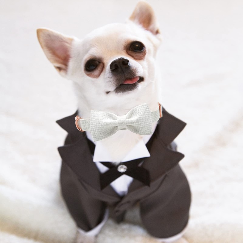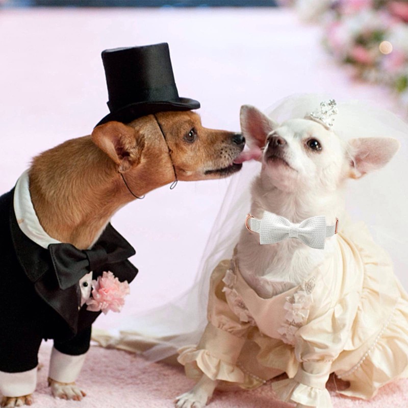 Elegant little tail Dog Collar with Bow - White Adjustable Cotton Bow Dog Collar Durable Collar with Bow Gift for Large Dogs