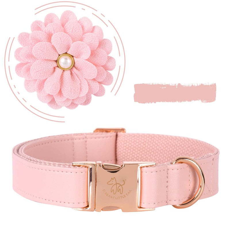 - FEATURES - A felt flower accessory is attached to the collar for dressing up. It can be taken off. The cotton webbing provides supreme flexibility and comfort for your pups. Outside leather with inside webbing collocation for durability and luxurious style.