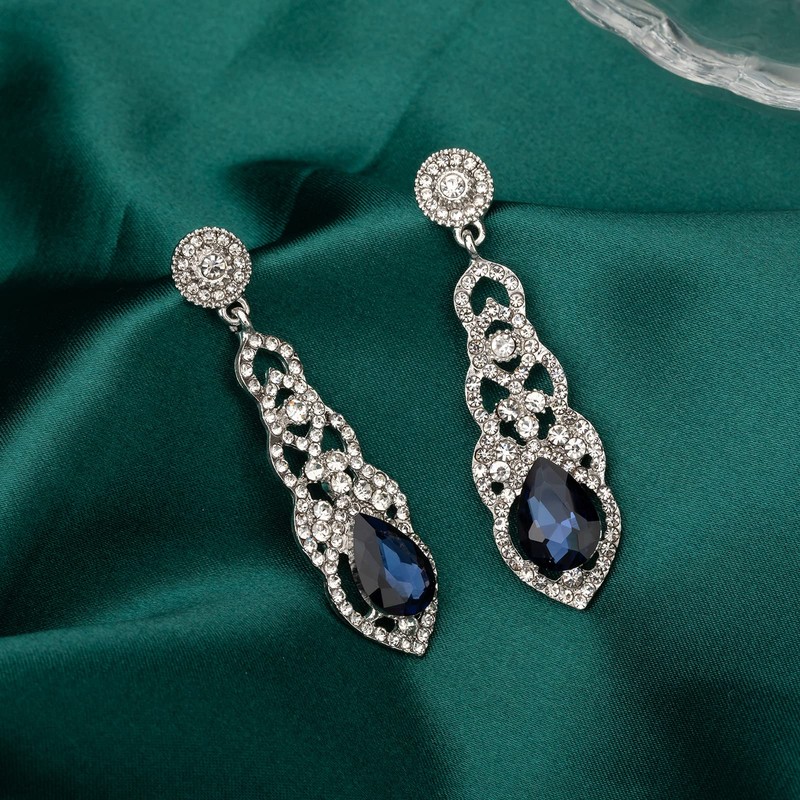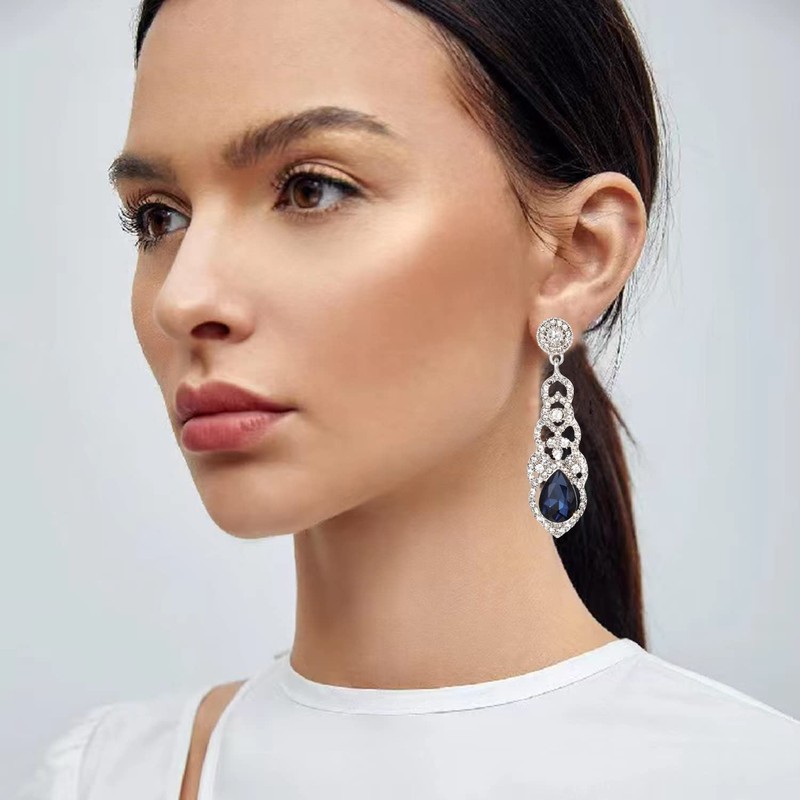 Elegant Rhinestone Silver Blue Wedding Bridal Teardrop Dangle Earrings Bling Crystal Chandelier Dangling Earrings for Women Brides Prom