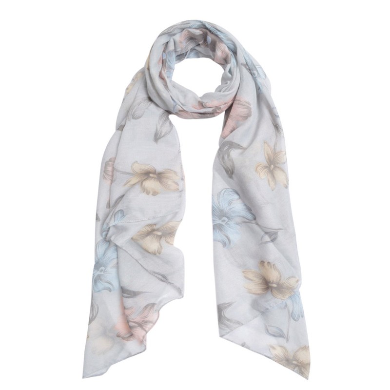 Elegant Viscose Artistic Floral Print Fashion Scarf Wrap, Grey