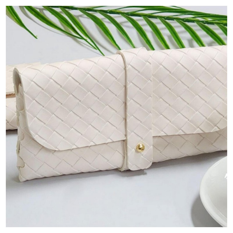 Elegant White Leather Eyewear Case & Pouch Eyeglass Case 5ea