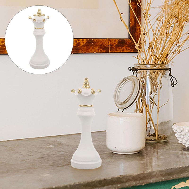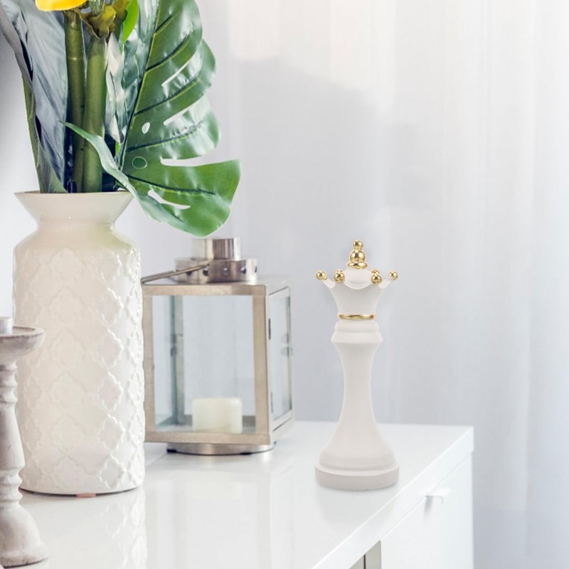 Elegant White Queen Chess Statue Figurine for Home and Office Decor - Artistic Resin Chess Piece for Desktop Bookshelf and Showcase