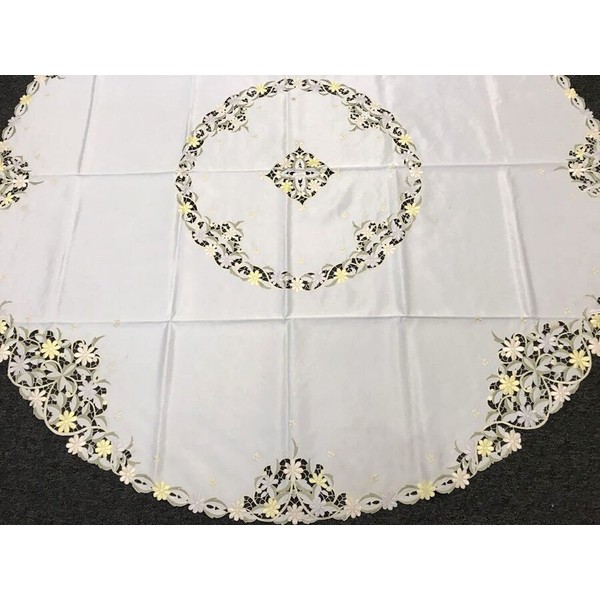Beautiful embroidered cut work flower fabric tablecloth. Gorgeous decoration for your sweet home, or a fantastic gift for friends and families