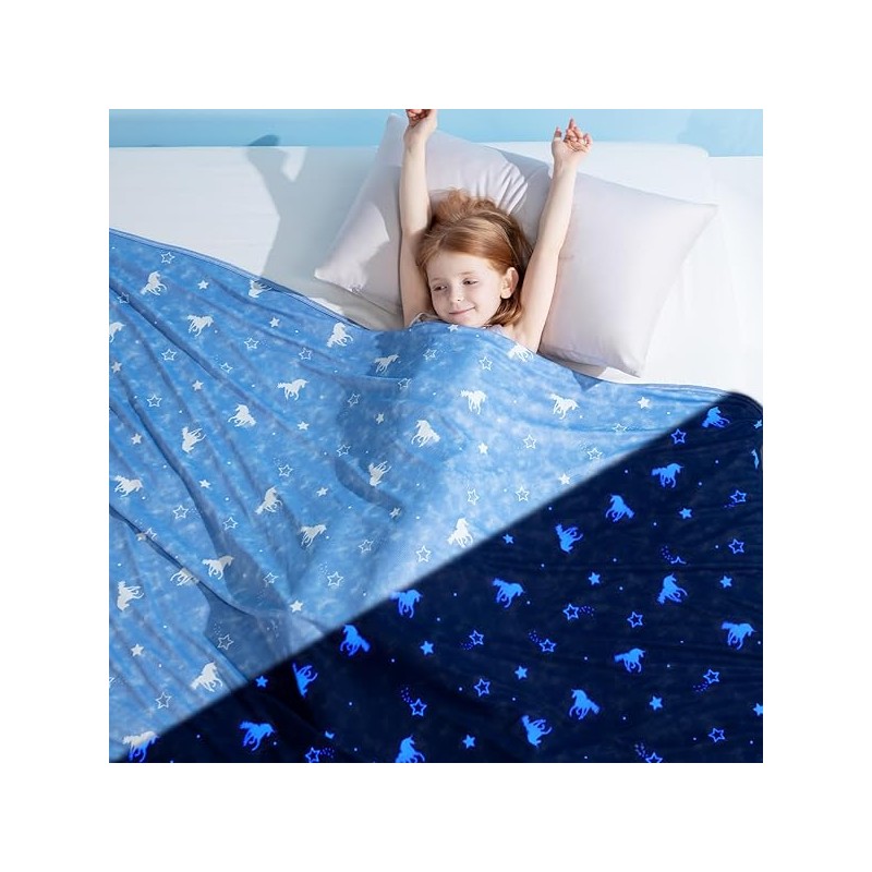 Elegear Kids Cooling Blanket for Hot Sleeper, Glow in The Dark, Q-Max>0.5 Arc-Chill 3.0 Cool Fabric to Keep Body Cool, Soft Summer Cold Blanket for Girls, 51" x 67"