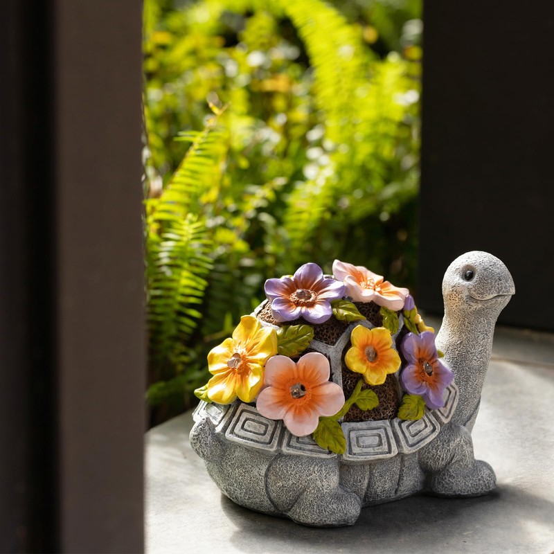 Elegondrar Garden Turtle Statue with Flowers and LED Lights, Outdoor Solar Turtle Decor, Unique Housewarming,Thanksgiving