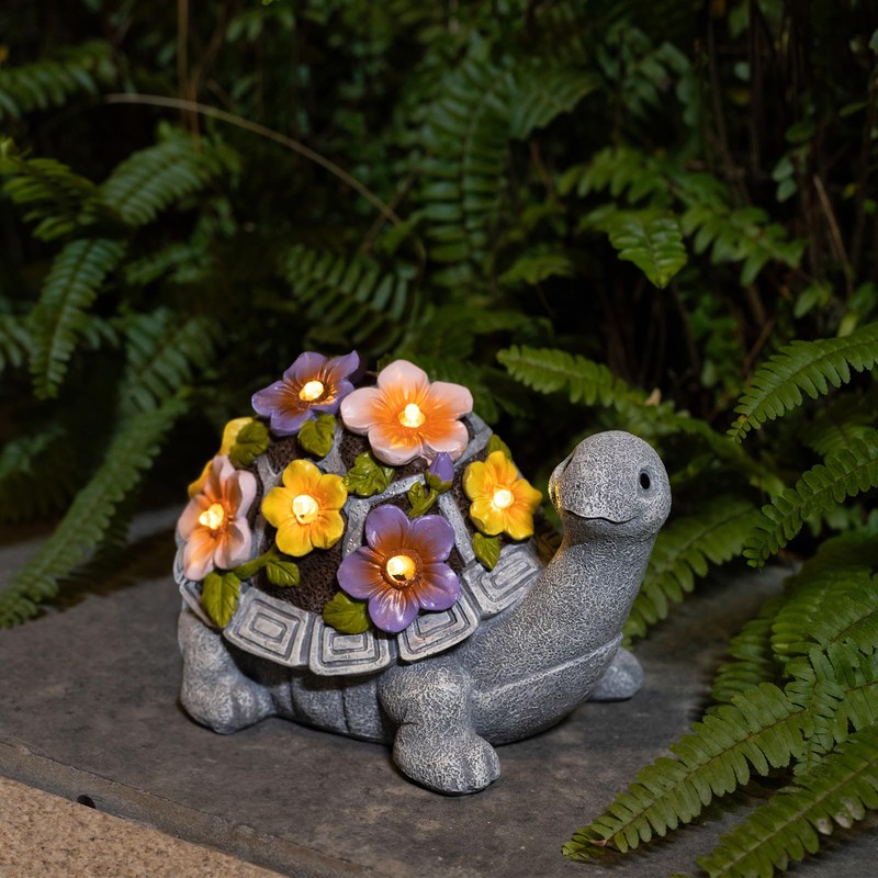 - Charming Smile in Your Garden: Enhance your outdoor space with our adorable turtle garden decor. This resin smiling turtle statue, featuring warm white LED lights in the center of the every flower ornaments, brings a cute and lively personality to your garden, adding vibrant energy and color to your home.