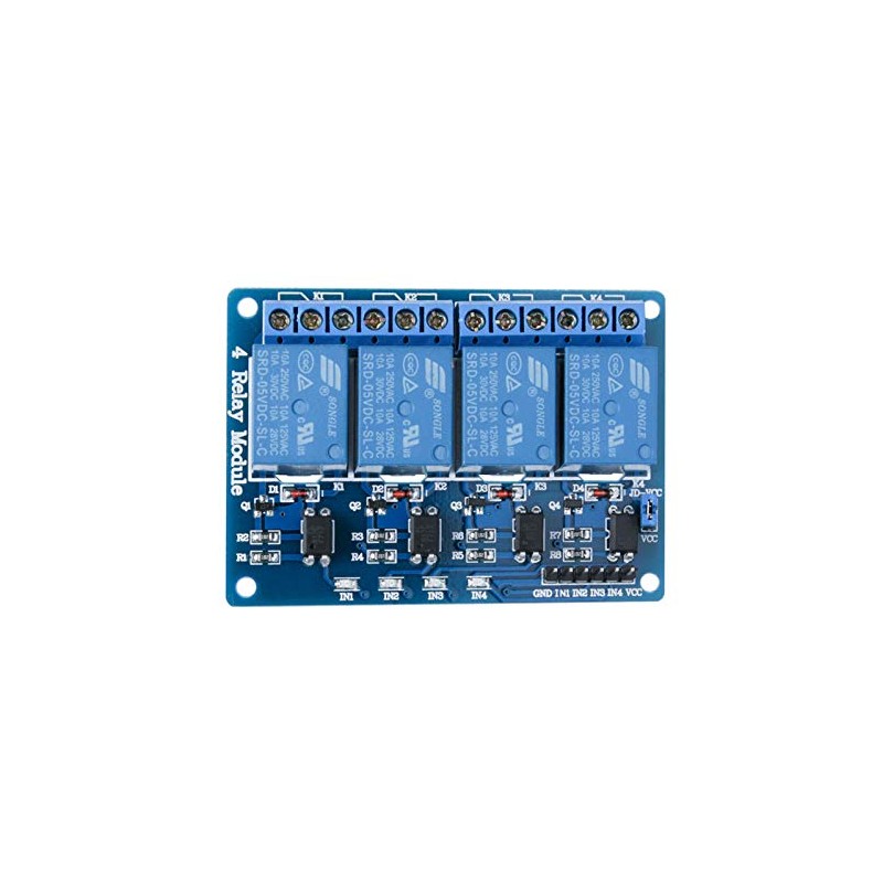 - 4-channel relay interface board, which can be controlled directly by a wide range of microcontrollers such as Arduino, AVR, PIC, ARM, PLC, etc. It is also able to control various appliances and other equipments with large current.