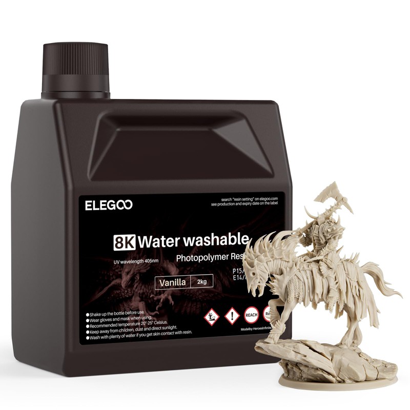 ELEGOO 8K Water Washable 3D Printer Resin, 405nm UV Curing Photopolymer Resina Best for 12K 14K Saturn MSLA DLP LCD Impresora 2000Gram Vanilla