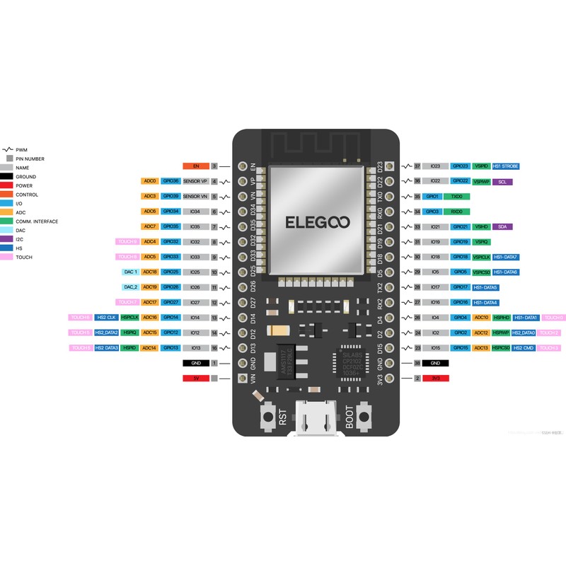 - Powerful Processing Capabilities The ELEGOO ESP32 development board includes a dual-core 32-bit processor that runs at up to 240MHz and provides impressive computing power.