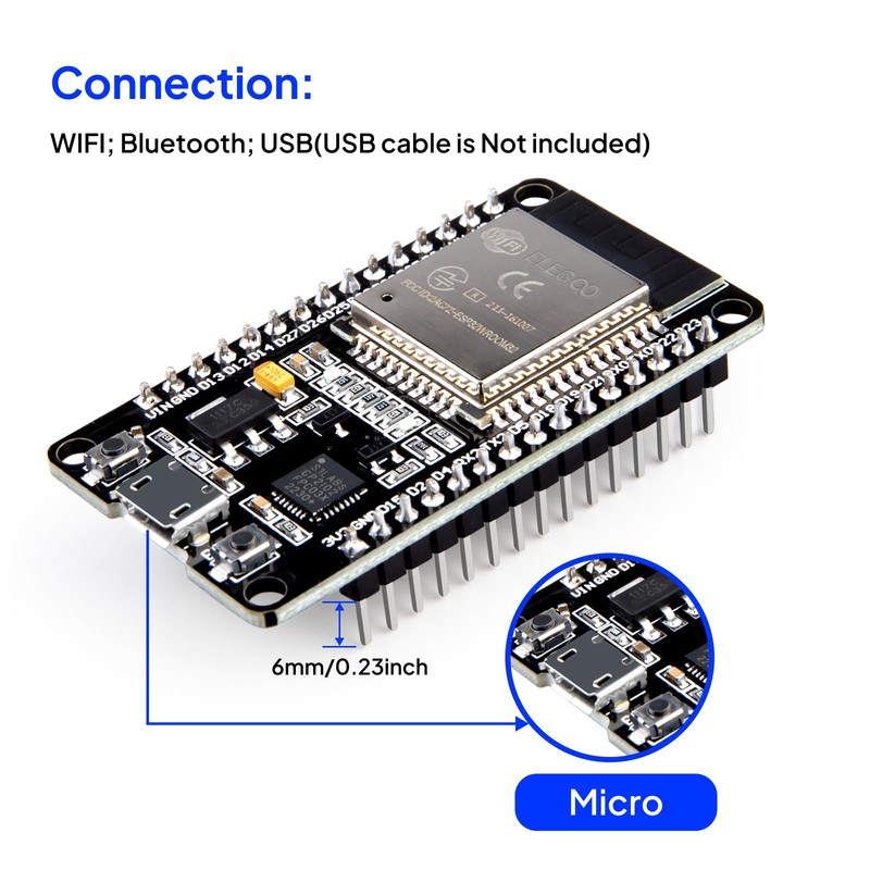 - Wireless Connectivity The ELEGOO ESP32 development board features Wi-Fi and Bluetooth capabilities and supports 2.4GHz Wi-Fi and Bluetooth, allowing a wide range of wireless communication and connectivity options.