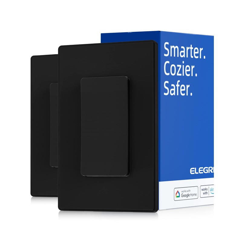 ELEGRP Smart Light Switch, 2.4GHz Wi-Fi Light Switch Compatible with Alexa & Google Assistant, Neutral Wire Required, APP Control and Timer Schedule, UL Certified,Single Pole, Black, 2 Pack
