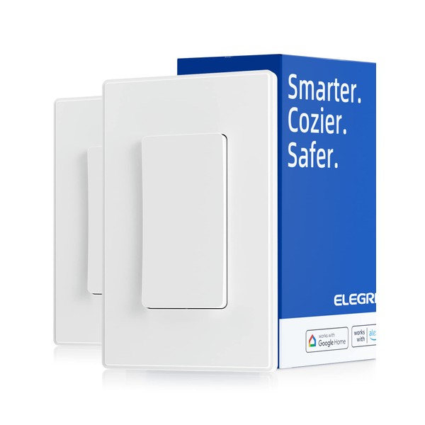 ELEGRP Smart Light Switch, 2.4GHz Wi-Fi Single Pole Light Switch Compatible with Alexa and Google Assistant, Neutral Wire Required, APP Remote Control and Timer Schedule, UL Certified (White, 2 Pack)