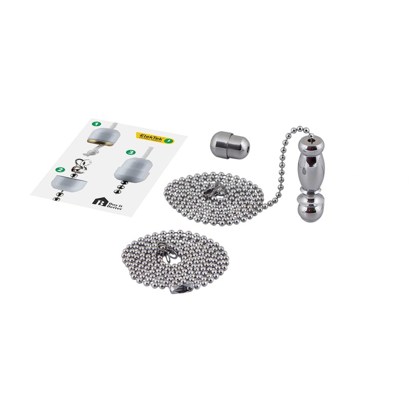 ElekTek ElekTek Premium Bathroom Ceiling Light Pull Cord Switch and Chain Kit with Chain Extension Bundle - Chrome Finial