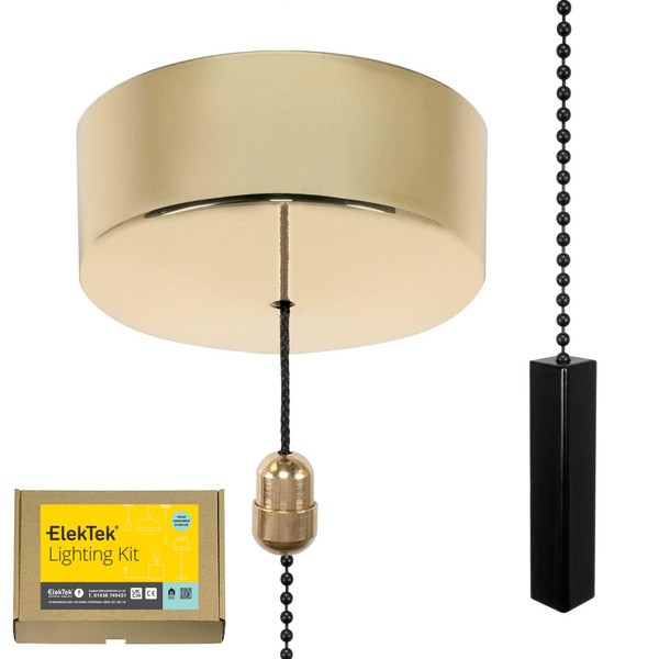 ElekTek Premium Brass Bathroom Light Pull Cord Switch Kit - Black Square Bar Black Chain