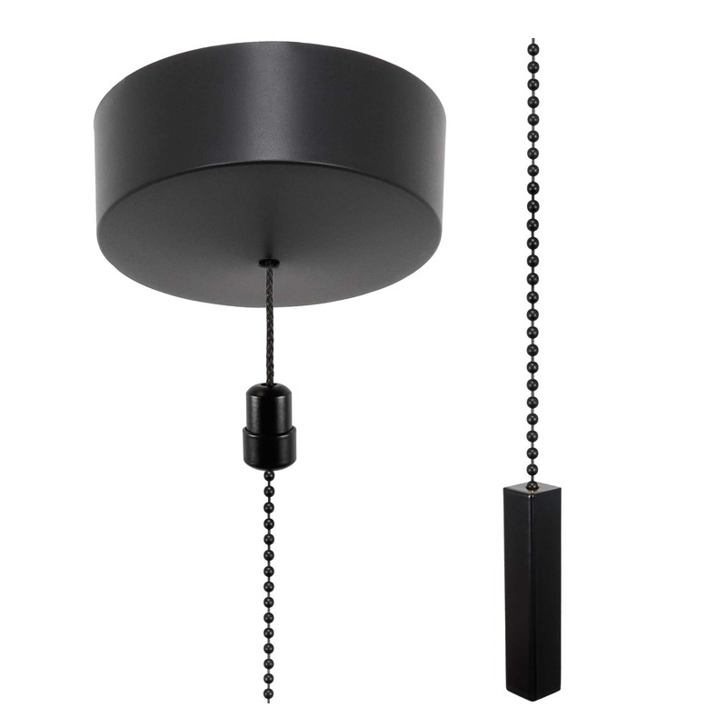 - Matt Black ceiling light pull switch with choice of light pull chain fob - includes 2-piece screw together cord connector to sit between cord from switch and new chain/fob