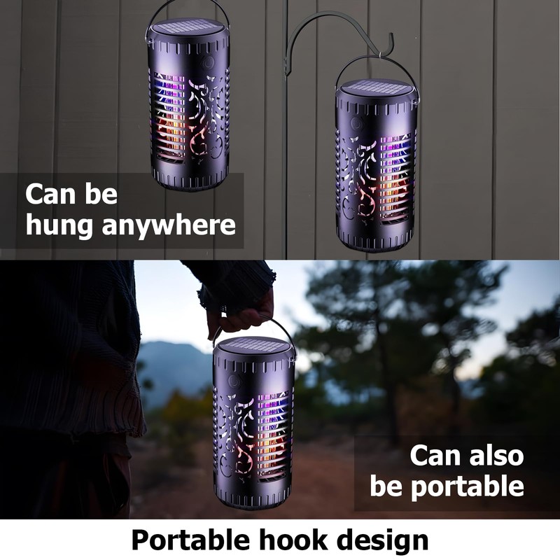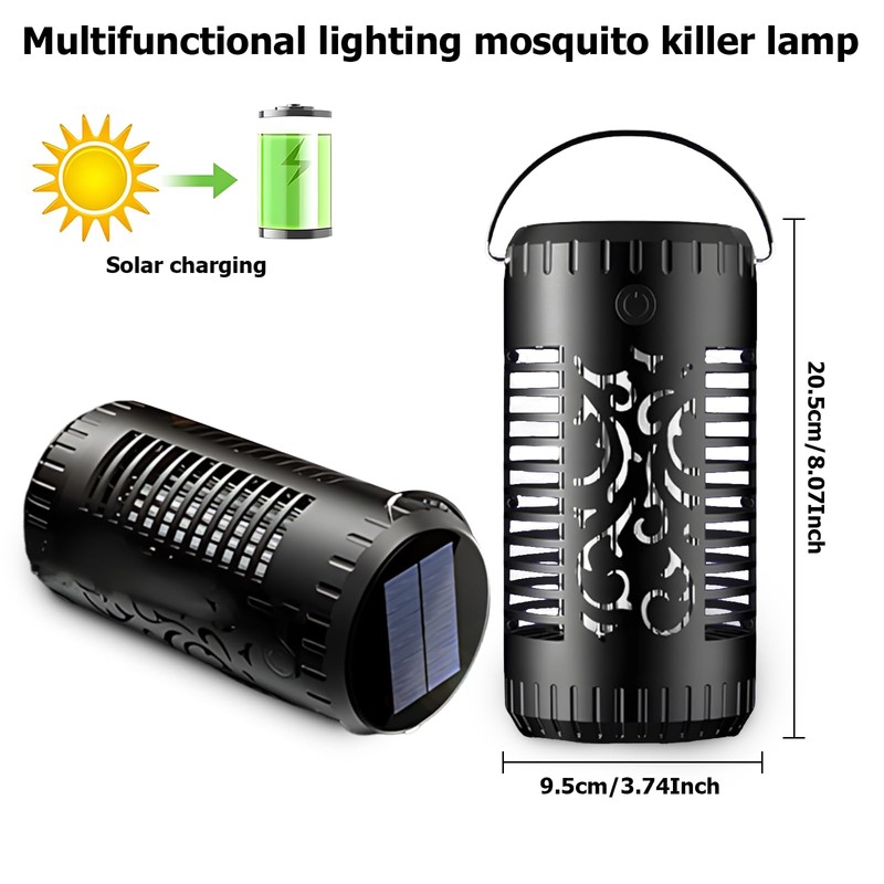 Elektrischer Insektenvernichter, 395NM UV Licht Mückenfalle, 2 IN 1 Solar Mückenfalle Mückenlampe mit LED-Licht, IP65 Wasserdicht Flammenlicht,für Camping,Garten,Garage, Hinterhof, Rasen