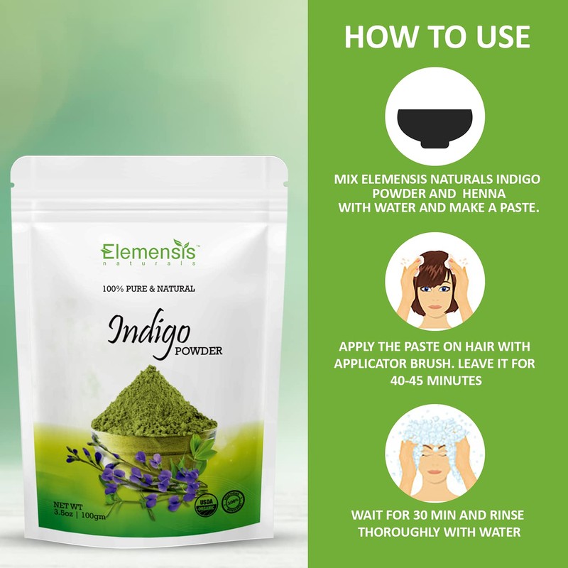 Elemensis Naturals Pure & Natural Indian Indigo Powder for Healthy and Strong Hair and Hair fall Control Repairs damaged hair Care & Hair Growth, 200gm