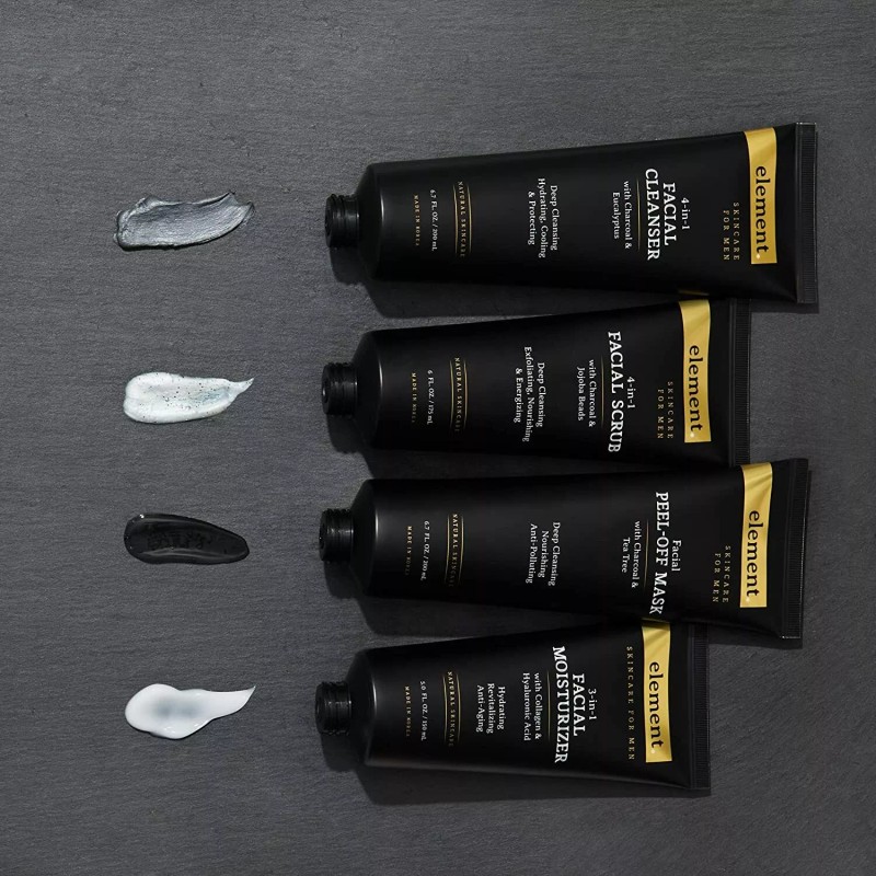 Element. Men's 4 in 1 Facial Scrub W/ Charcoal & Jojoba Beads - Deep Cleansing, Exfoliating, Nourishing & Energizing | Removes Bacteria, Dirt, Oils & Impurities | Made in Korea - 175ML