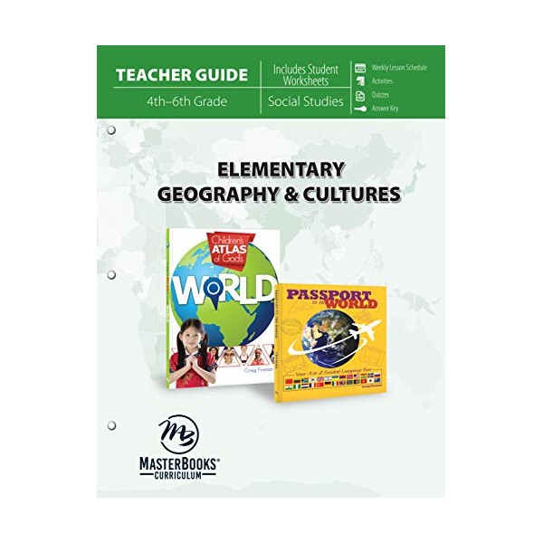 Teacher Guide for the 36-week, 4th-6th grade social studies course! The vital resource for grading all assignments from the Elementary Geography & Cultures course, which includes: Information on the design of ecosystems and biomes, great civilizations, and discoveries found around the world, as well as details of God’s amazing design of our worldUnique insights into Christian history makers and amazing landmarks, as well as global recipes. OVERVIEW: Children will travel the world in comfort of their own homes. Through this Elementary Geography & Cultures course, students experience a wondrous global journey within the pages of two God-honoring books, encountering places and people from around the world. Children will gain knowledge of intriguing facts about countries, including their capital cities, maps, flags, populations, and religions. It glorifies God, explores His creation, and honors His followers around the world. Included are outline maps and facts regarding the seven continents, as well as detailed maps and data of the featured countries. The comprehensive information provided for each focus country will bring to light their culture and traditions, holidays, exploration, legal system, and economic industries, as well as missionary accounts and other material to help children connect to people from regions around the globe. FEATURES: The calendar provides lesson planning with clear objectives, and the worksheets and quizzes are all based on the readings from the two main books.