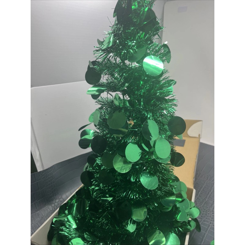 ELEMENTS 3’ Foot Collapsible Tinsel Tree In Green By Home Elements NIB