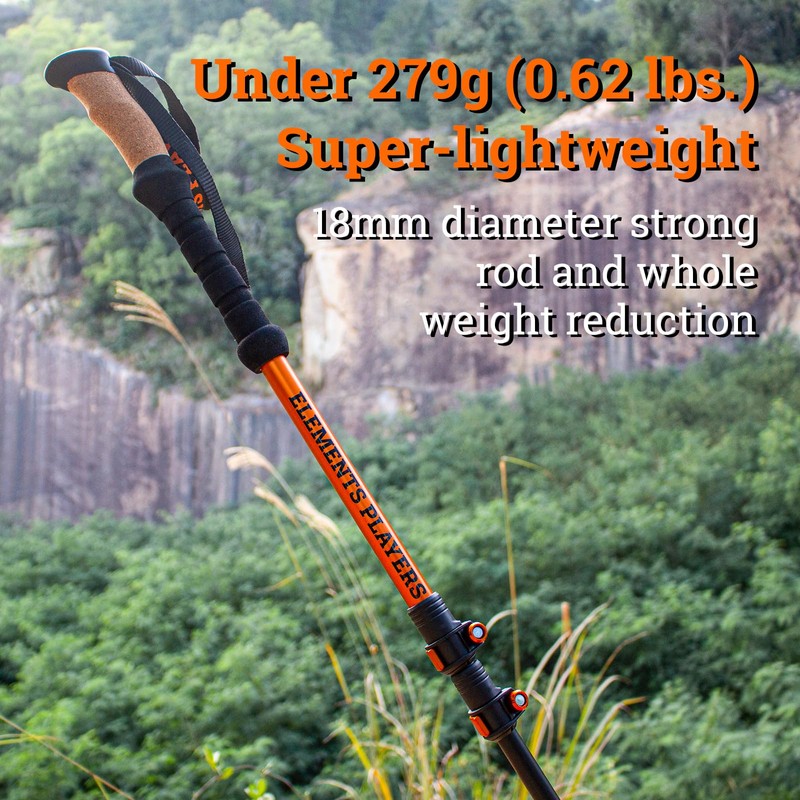 - Lightweight & Durable: We chose 7075 aviation aluminum alloy, these trekking poles are lightweight and strong with the enhanced 18/16/14mm diameter design, providing you with optimal durability without adding unnecessary weight to your gear. Each pole weighs only 279g (0.615 lbs.), ensuring easy swings for your long distance outdoor adventures. The Outer Secure Locking Mechanism built by 7075 aviation aluminum connection core and outer lever locker ensure a secure and reliable locking system.
