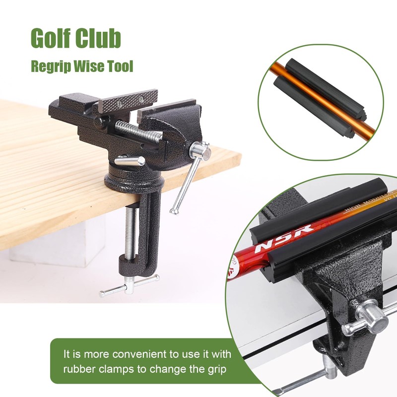 - 【Easy to Use】> Securely attach the vise to the edge of a table. >> Use the rubber clamp to hold the golf club in place within the vise. >>> Use the hook knife to remove the old grip. >>>> Clean any remaining adhesive and apply the new double-sided tape. >>>>> Install the new grip (solvent not included).