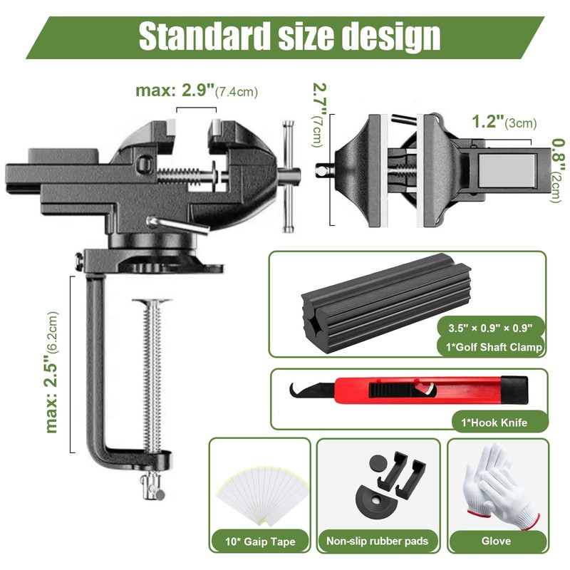 - 【Versatile Applications】This table vise is not only perfect for replacing golf grips but also perfect for woodworking, drilling, gluing, metalworking, pipe cutting, DIY projects, home repairs, outdoors projects and more. Its stability and flexibility make it a practical tool for homes, workshops, and garages etc.
