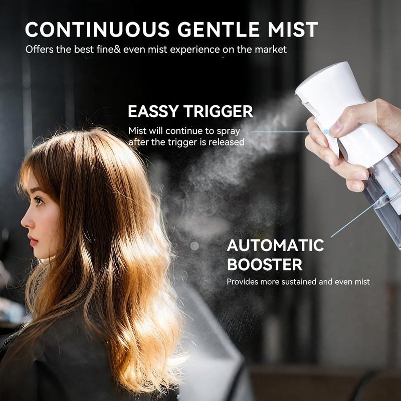 - Salon-Perfect Hair in Seconds ✨ Ultra-Fine Mist Technology → Achieve smooth, frizz-free styles like a pro with our continuous, even mist coverage. No wet patches or over-saturation—just weightless hydration for blowouts, curls, or braids. Ideal for: Heat protectant application, hair oil dilution, and dry shampoo activation.