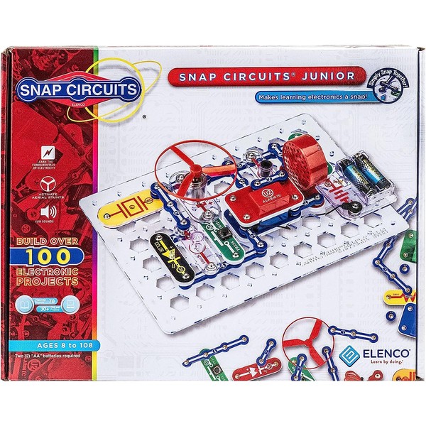 Give your child an exciting, hands-on introduction to electronics with Elenco Electronics Snap Circuits Jr. SC-100. This innovative kit contains over 30 color-coded, real circuit components that snap together to create working electronic circuits and devices. Recommended for children 8 and older, this set offers 101 do-it-yourself projects that will give your child an entertaining, concrete education on how electronics work.
