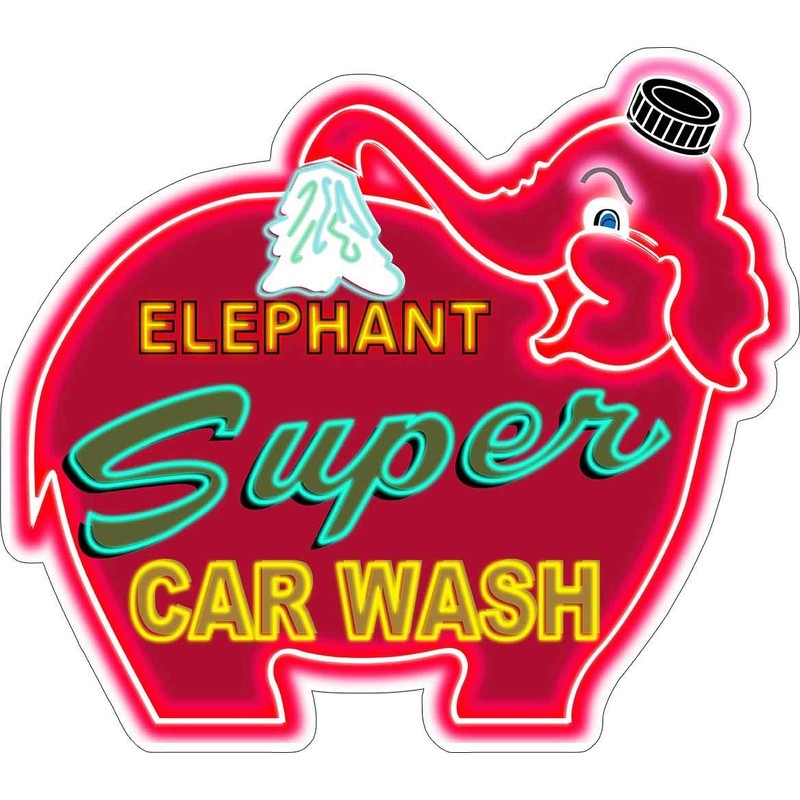 Elephant Super Car Wash Neon Stylized Plasma Cut Metal Sign
