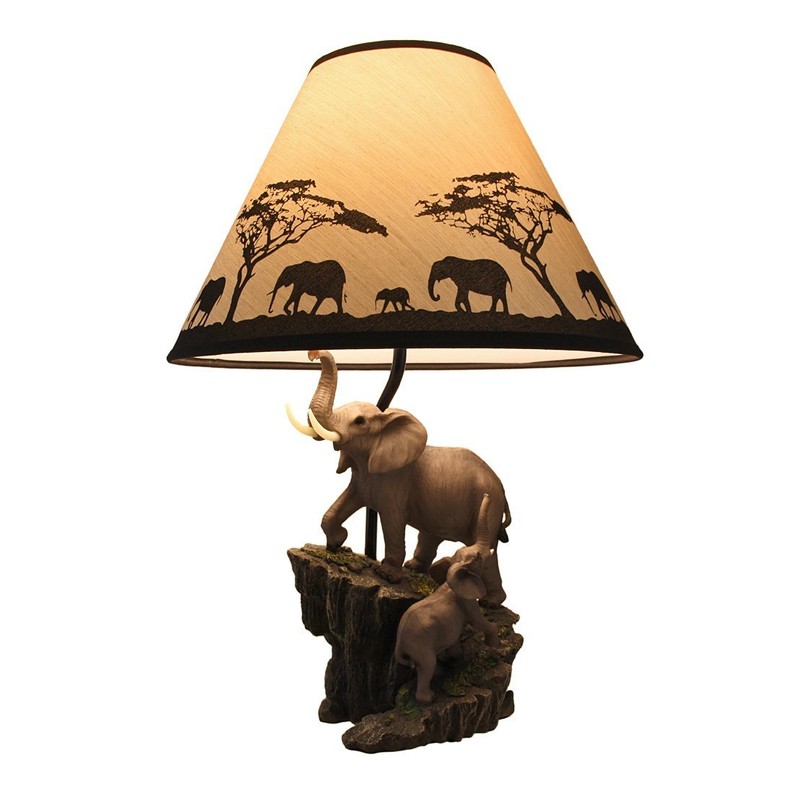 Elephants on Expedition Sculptural Table Lamp w/Decorative Shade