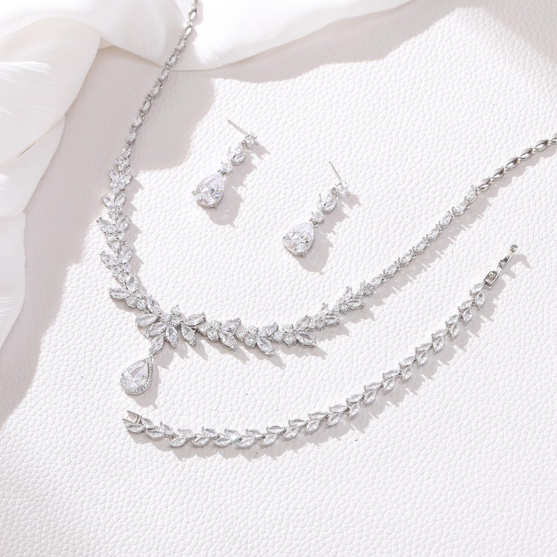 - MATERIAL: Stunning bridal costume jewelry set for wedding bride bridesmaid, made of high quality brass, Lead & Nickle free. Suitable for sensitive skin and comfortable for wear. The cubic zirconia will reflect marvelous shiny and show your charm