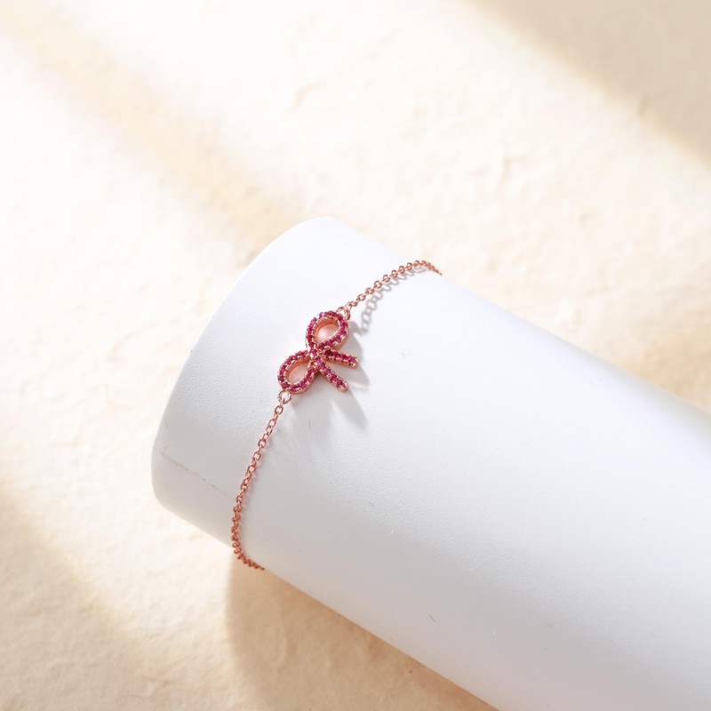 EleQueen Pink Bowknot Bracelet for Women, 925 Sterling Silver Casual Cubic Zirconia Summer Trendy Bracelet Jewelry Gift Pink Rose Gold-Tone