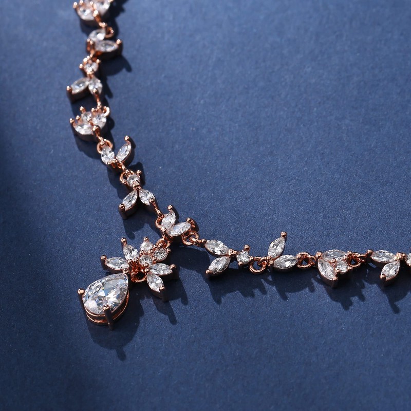 - ♥Material♥ This Wedding Jewelry Set is made of Copper & Rose Gold Plated, adorned with a petite teardrop, Marquise-cut Clear Cubic Zirconia; High Polished, Nickel-free, Lead-Free, Hypoallergenic and Shiny Forever. Safe and comfortable to wear